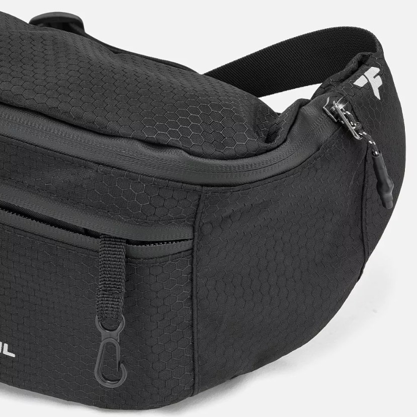 Регулируемый ремень с фастексом позволяет носить сумку на поясе или через плечо, подстраивая посадку под себя.