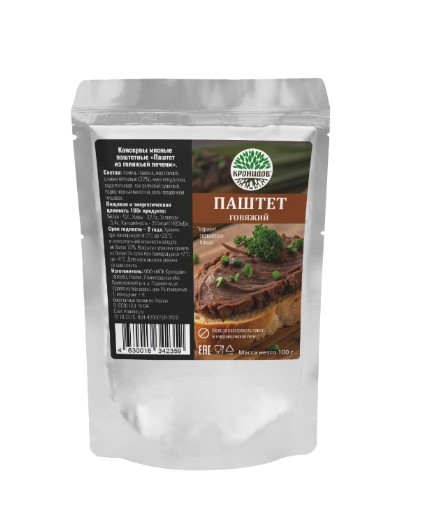 Печень говяжья, свинина, вода, масло сливочное, лук репчатый, мука кукурузная, перец черный молотый, соль.