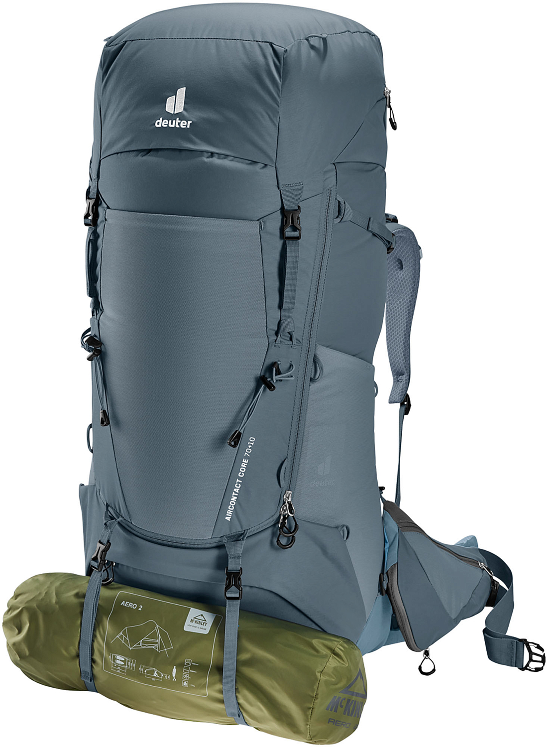 Система спины Aircontact с новой технологией Air Spacer гарантирует идеальный контроль груза, амортизацию и вентиляцию. Спинные подушки работают как насос и активно отводят влагу во время движения, а пространство посередине позволяет позволяет удобно разместиться позвоночнику и циркулировать воздуху. Система регулировки VariSlide помогает легко и быстро отрегулировать рюкзак без сложных манипуляций. Пояс с лямками оснащены подвижными элементами Active Fit и VariFlex соответственно.