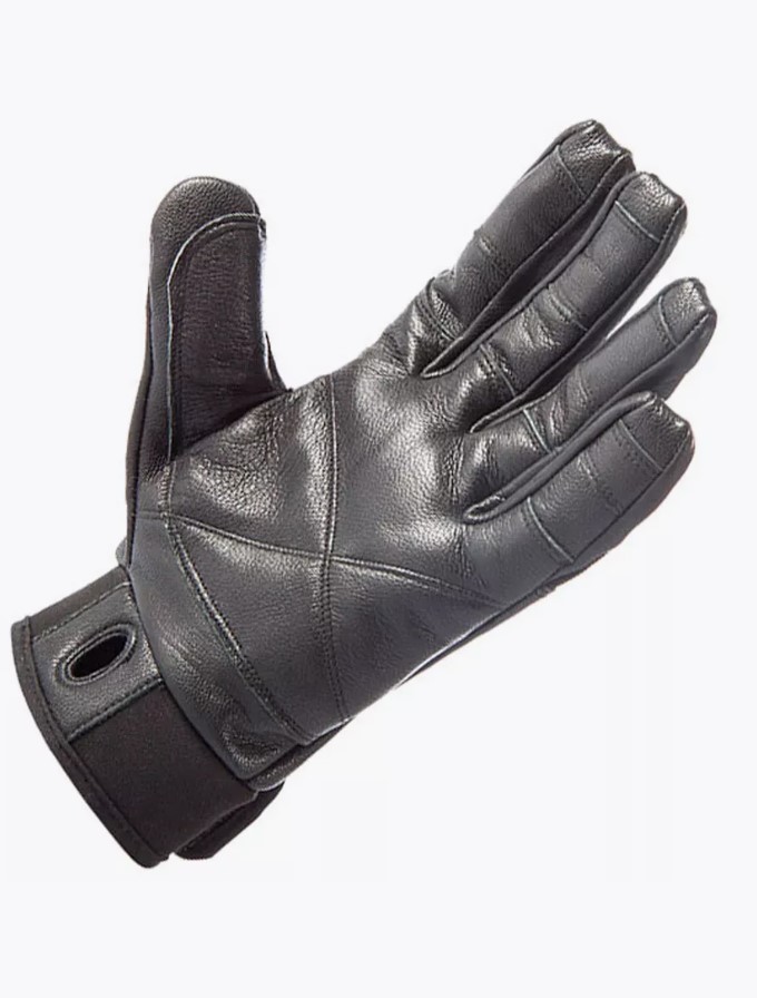 Защита ладони и пальцев обеспечивается благодаря двойному слою натуральной кожи. Верхняя часть перчатки выполнена из дышащего, эластичного нейлона. Манжеты из тонкого неопрена с застежкой на липучке позволяют регулировать обхват кисти руки.