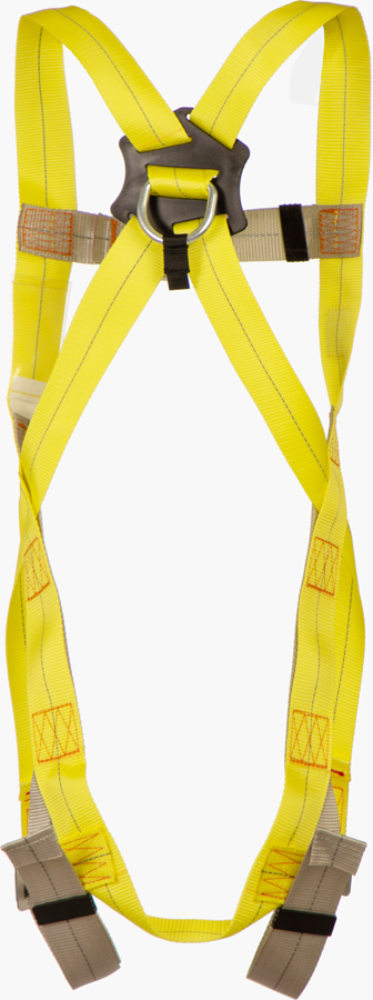 Страховочная точка крепления расположена на спине. Ее можно передвигать по вертикали на Х-образных плечевых лямках для корректировки правильного положения под рост пользователя.